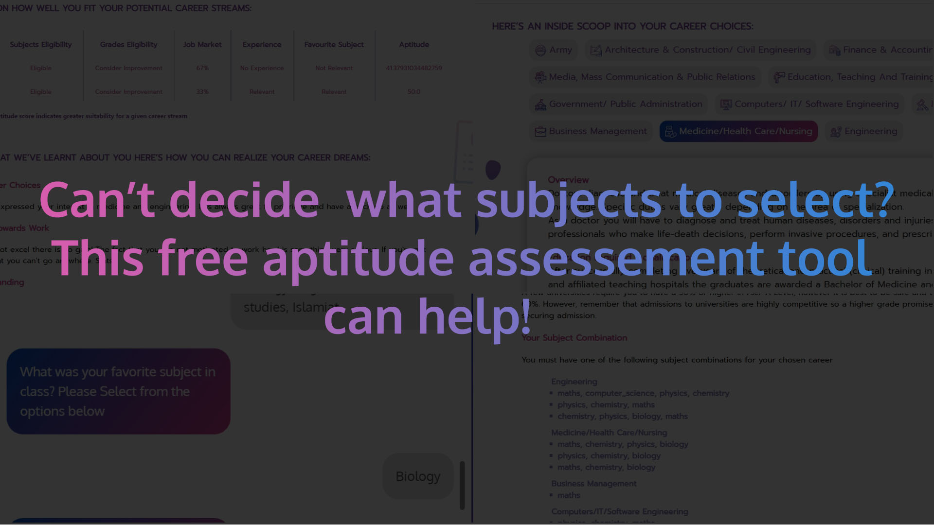 It’s the time of the year when students from 8th grade and their parents begin thinking about what subjects they should opt for in 9th grade. And O level and Matric students begin thinking of the subjects they should opt for in their higher education. This decision is critical and stressful and this is where we can help you with our free aptitude assessment tool designed by career counsellors and psychologists. Why is Aptitude Assessment Important?